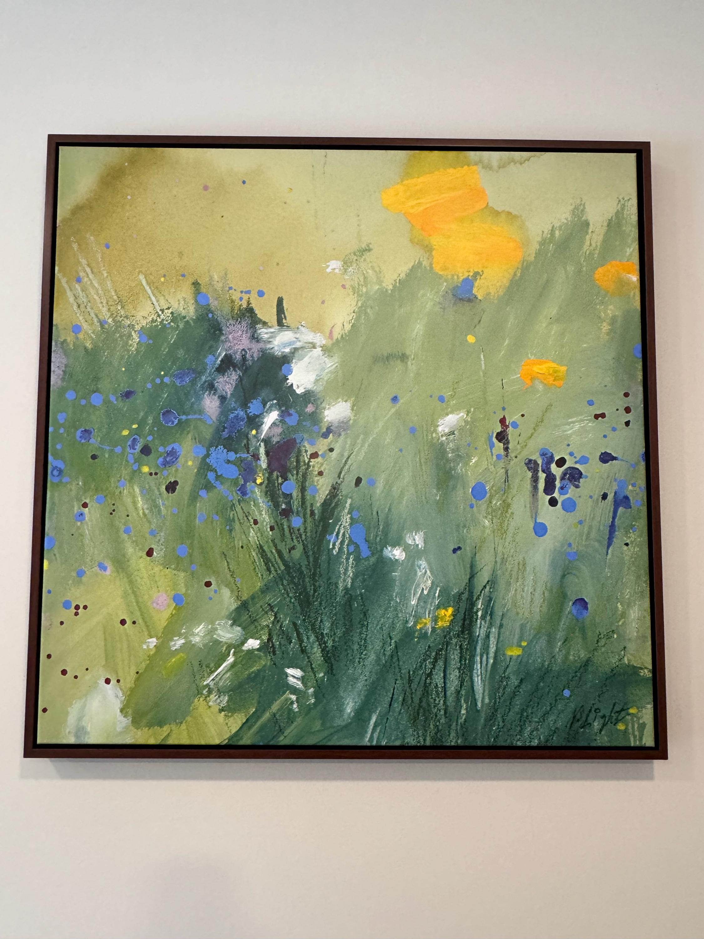 Wildflower Nature Fields Wall Art. It is a Fine Art FRAMED CANVAS PRINT of my original abstract nature-inspired painting on canvas "Wildflowers Field".